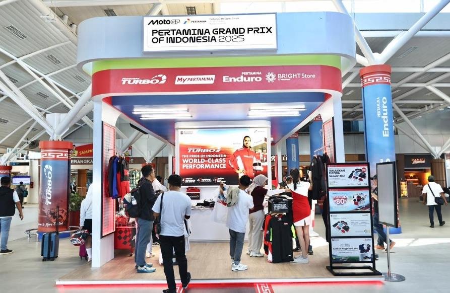 Sambutan hangat langsung menyapa mereka. Replika grafiti Pertamina Grand Prix of Indonesia berdiri mencolok, spot foto dengan pembalap Pertamina Enduro VR46 Racing Team, Fabio Di Giannantonio, menjadi rebutan, sementara nuansa budaya lokal berupa motif tenun ikat khas Suku Sasak menambah eksotisme di area bandara. Suasana ini membuat para tamu seolah langsung diajak masuk ke dalam euforia Mandalika.